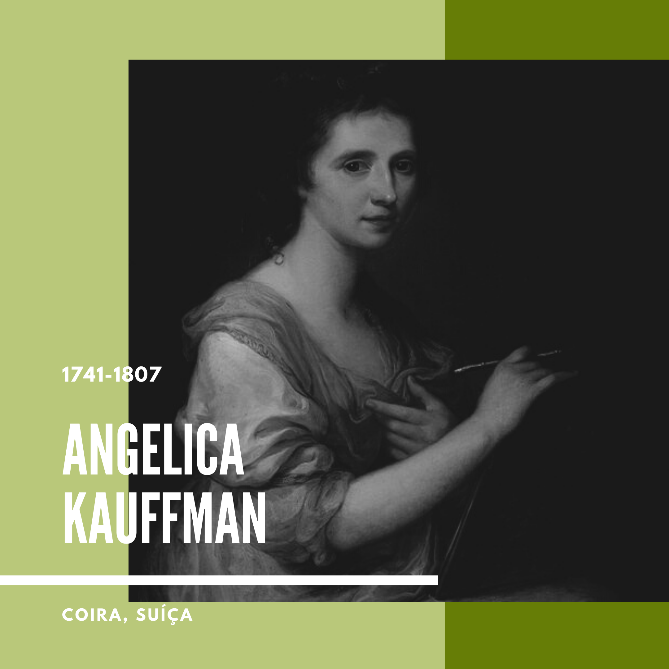 1741-1807 Angelica Kauffman foi reconhecida desde cedo como uma prodígio infantil, tendo seu pai, também pintor, como professor. Trabalhando com o pai, passou pela Suíça, onde nasceu, e também pela
